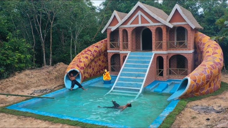ساخت خانه دو طبقه زیرزمینی با سرسره آبی به استخر در ۱۰۰ روز