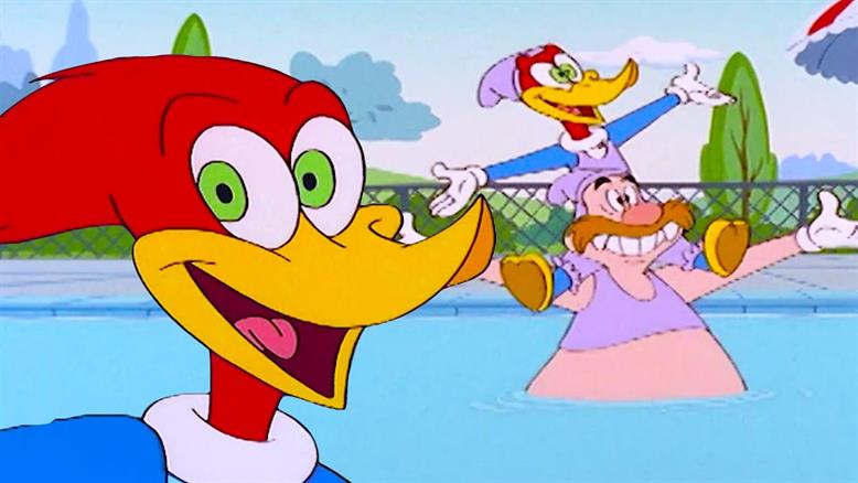 کارتون وودی دارکوبه _ وودی شنای موزون انجام میدهد