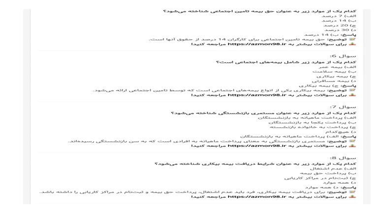 جهت دانلود رایگان بقیه سوالات بر روی لینک آبی کلیک کنید : https://azmon98.ir/tw4o کدام یک از موارد زیر به عنوان مزایای تامین اجتماعی شناخته میشود؟