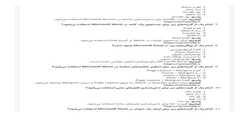 جهت دانلود رایگان بقیه سوالات بر روی لینک زیر( آبی )کلیک کنید : https://azmon98.ir/r917 کدام یک از ویژگیهای زیر مربوط به Microsoft Excel است؟
