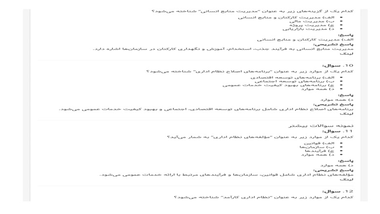 سوالات نظام اداری و برنامه‌های اصلاح,