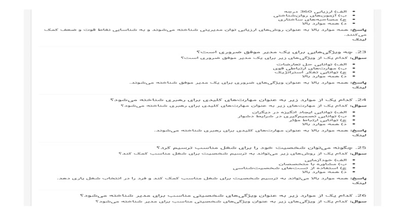 پاسخ: همه موارد بالا برای یک مدیر موفق ضروری است و به بهبود عملکرد سازمان کمک میکند.