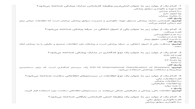 جهت دانلود رایگان سوالات بر روی لینک آبی کلیک کنید : https://azmon98.ir/uplq . کدام یک از موارد زیر به عنوان اصلیترین وظیفه کارشناس مدارک پزشکی شناخته میشود؟
