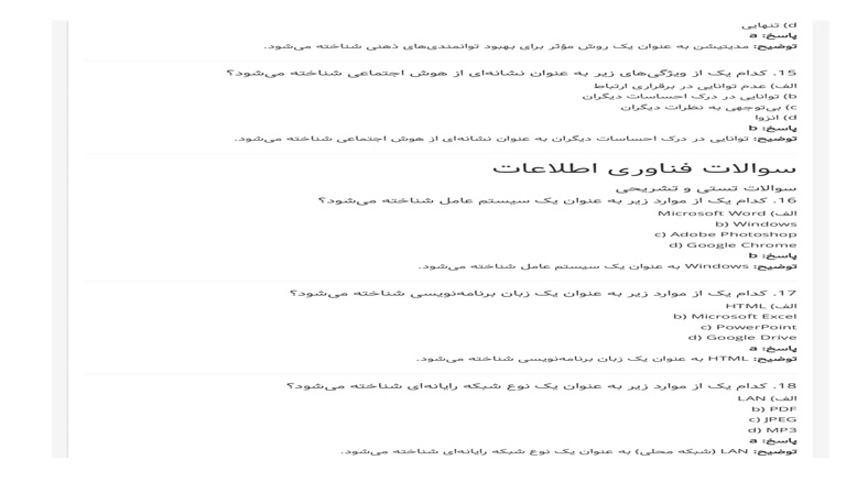 سوالات اطلاعات عمومی و دانش اجتماعی