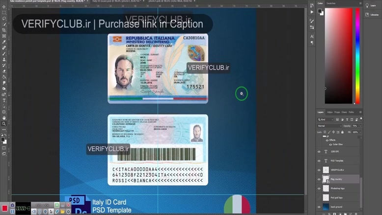 Editable Italy ID template built for media production. High-resolution layers make it ideal for VFX artists, digital creators, and anyone needing quality prop graphics in Photoshop.