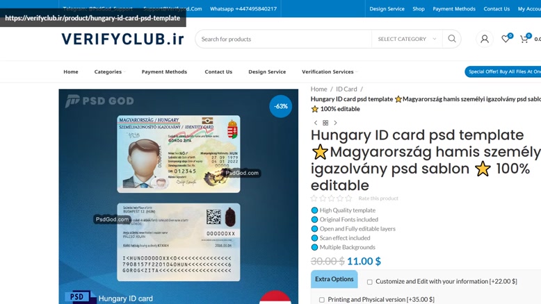 You can purchase and download the high-quality source file of the open layer associated with Hungary fake ID card psd template (Magyarország hamis személyi igazolvány psd sablon), which is identical to the original ID card, from the VERIFYPSD.com online store. Additionally, Hungary fake ID card psd template (Magyarország hamis személyi igazolvány psd sablon) is available for purchase using cryptocurrency payments for your convenience.