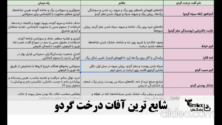 این بیماری یا آفات درخت گردو باعث میشه روی برگها، شاخهها و میوهها لکههای تیره بیفته و در نهایت مغز گردو سیاه بشه، میوهها بریزن و کیفیت محصول پایین بیاد. این بیماری بیشتر وقتی رخ میده که: