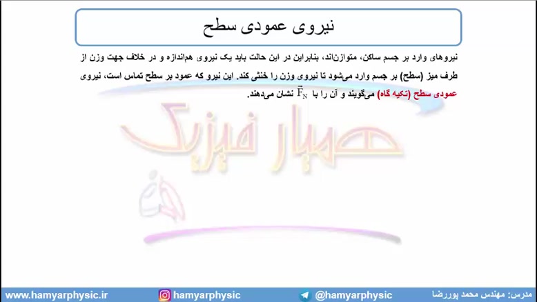 آموزش مبحث "نیروی عمودی سطح 1" در فیزیک دوازدهم که توسط مهندس محمد پوررضا مدرس فیزیک و صاحب امتیاز سایت همیار فیزیک آماده شده است.