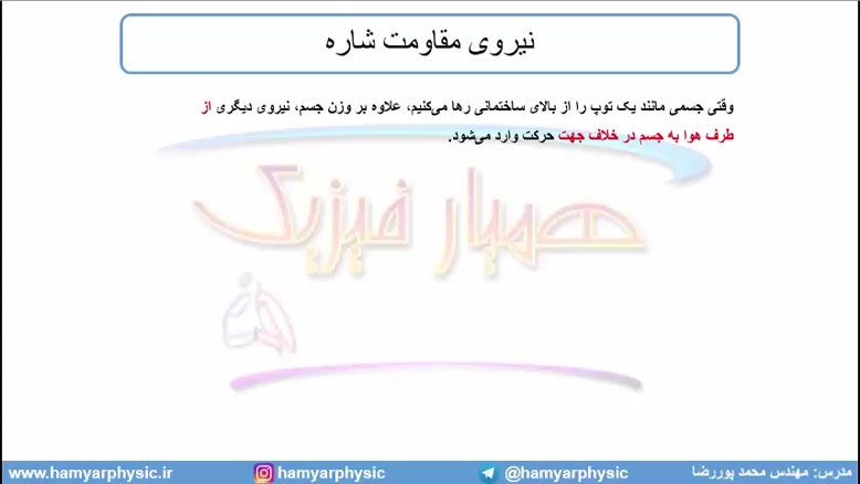 آموزش مبحث "نیروی مقاومت شاره 1" در فیزیک دوازدهم که توسط مهندس محمد پوررضا مدرس فیزیک و صاحب امتیاز سایت همیار فیزیک آماده شده است.