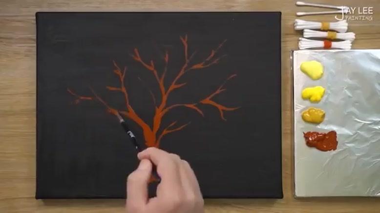 نماشا - کشیدن درخت پاییزی با طرفندی ساده آموزش نقاشی درخت پاییزی با طرفندی ساده